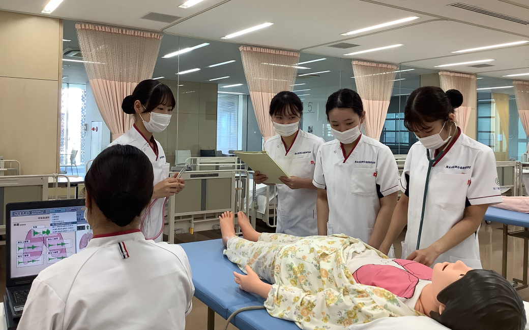 令和2年度よりデジタル(電子)テキスト・タブレットを活用したICT教育を導入し、学習環境を整えています。このような環境のもと、高度な知識・技術・判断力をもち、保健・医療・福祉チームの中で主体的で科学的な看護実践力を発揮し、多職種と連携協働できる能力を身につけ、視野の広い豊かな人間性を備えた看護師の養成を目指しています。